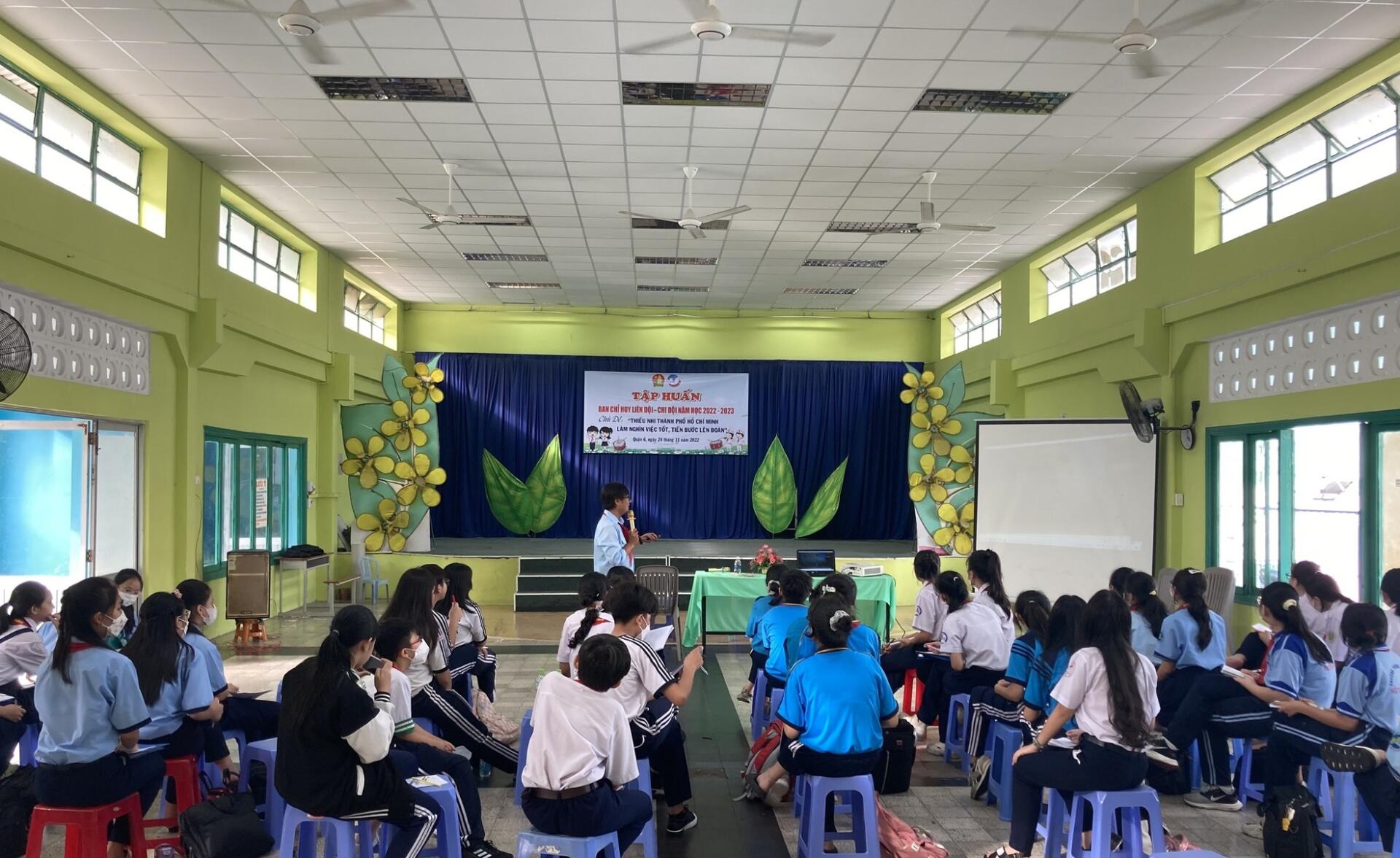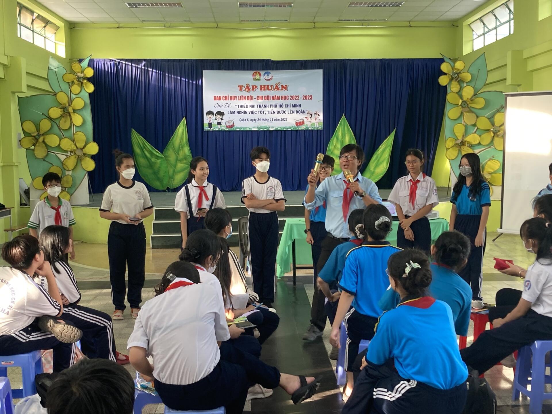Ngày 17/11/2022 tại Hội trường Nhà Thiếu nhi quận 6 đã diễn ra chương trình tập huấn Ban chỉ huy Liên Đội, Chi Đội năm học 2022 – 2023, với chủ đề “Thiếu nhi Thành phố Hồ Chí Minh làm nghìn việc tốt, tiến bước lên Đoàn”, đã thu hút các em Đội viên tham gia với nhiều nội dung phong phú và hấp dẫn. Đây là hoạt động thường niên của Nhà Thiếu nhi nhằm tập huấn cho các em Đội viên để trang bị các kỹ năng cần thiết trong quá trình tham gia và tổ chức các hoạt động của Đội Thiếu niên Tiền phong Hồ Chí Minh tại trường học.