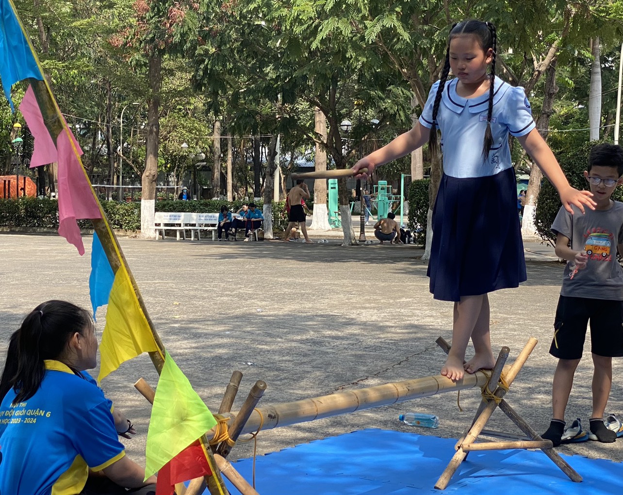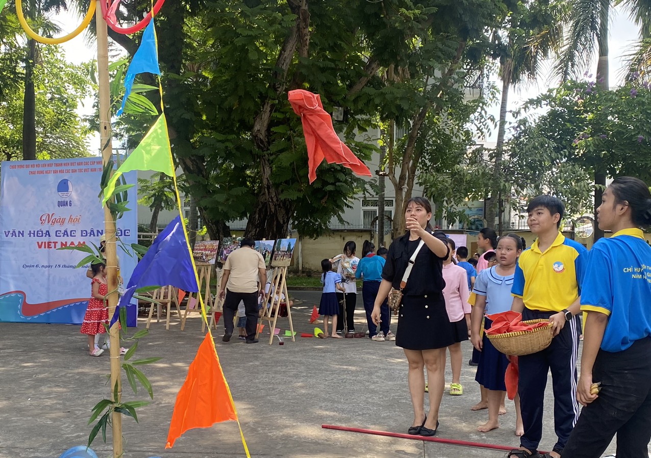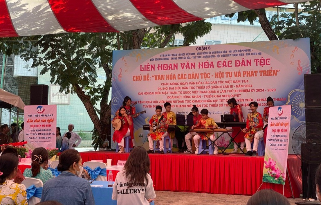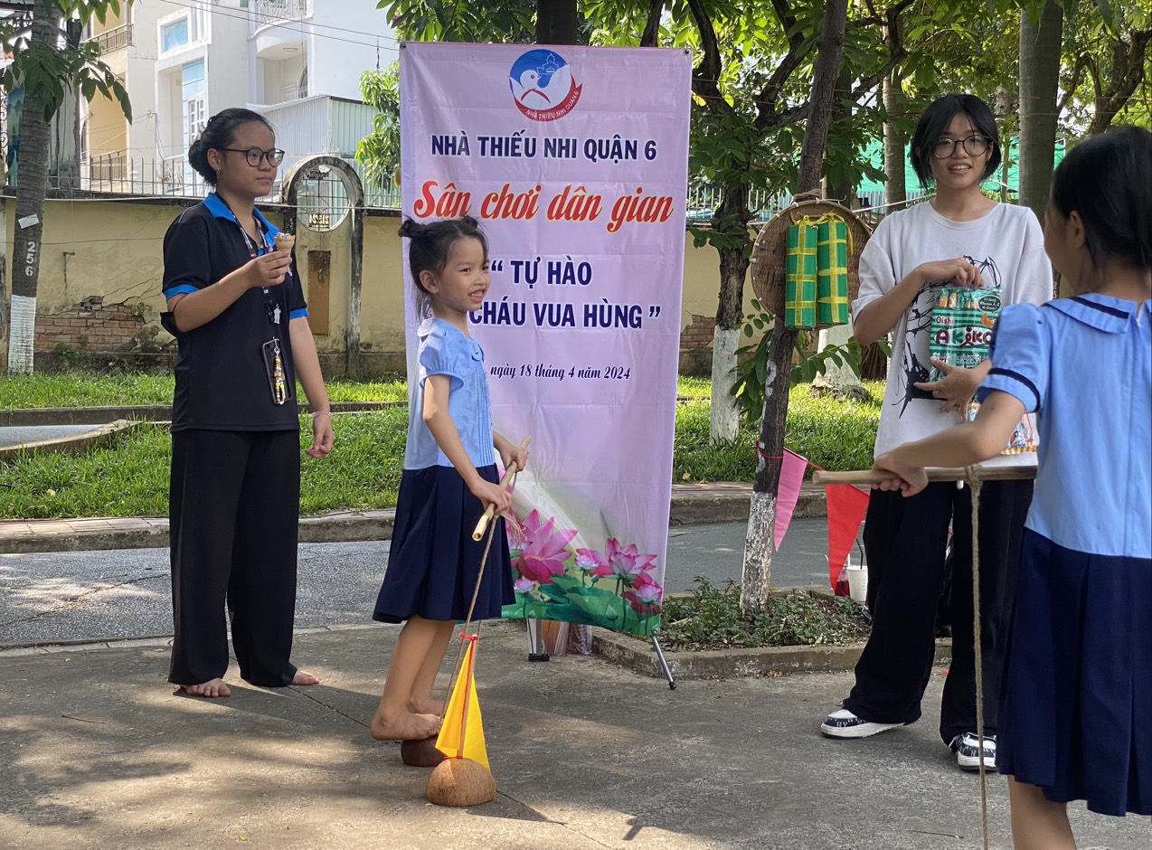 Nhằm đẩy mạnh công tác tuyên truyền và giáo dục cho các em thiếu nhi tinh thần uống nước nhớ nguồn, tự hào về truyền thống anh hùng, bất khuất của cha, ông trong quá trình dựng nước và giữ nước. Vào sáng ngày 18/4/2024 tại Công viên Văn hóa Bình Phú, Nhà Thiếu nhi Quận 6 đã thực hiện chương trình văn nghệ mang đậm màu sắc văn hóa dân tộc như giới thiệu các ca khúc dân ca và các nhạc cụ dân tộc cho các em thiếu nhi. Đồng thời, cũng tổ chức các gian hàng trò chơi dân gian trong Lễ Giỗ Tổ Hùng Vương của Quận như trò chơi ném còn, trò chơi vượt cầu khỉ, trò chơi đi gáo dừa,… tạo nên môt bầu không khí lễ hội vui tươi và nhiều bổ ích cho các em thiếu nhi tại địa phương