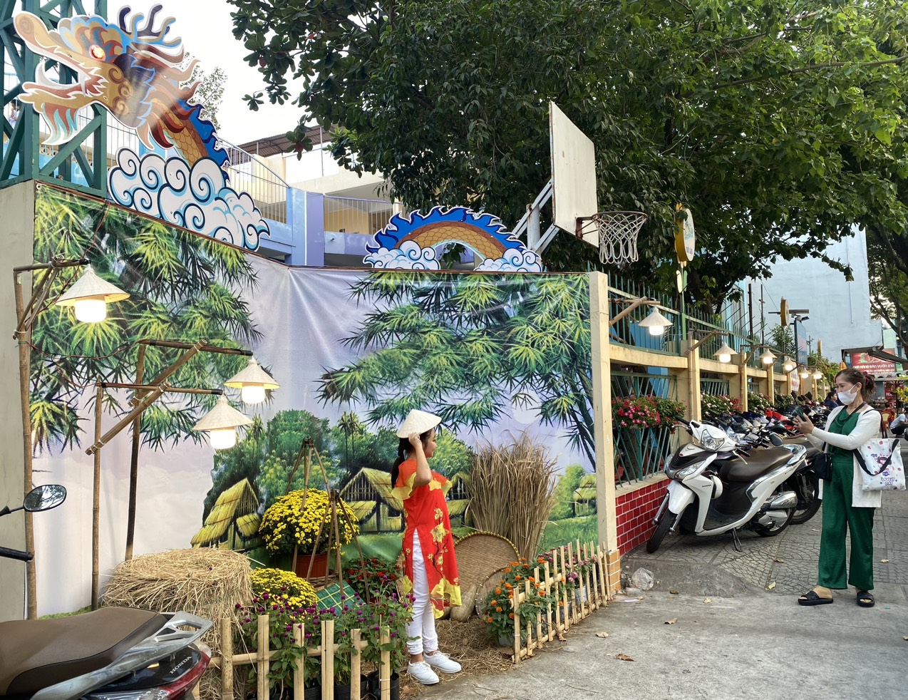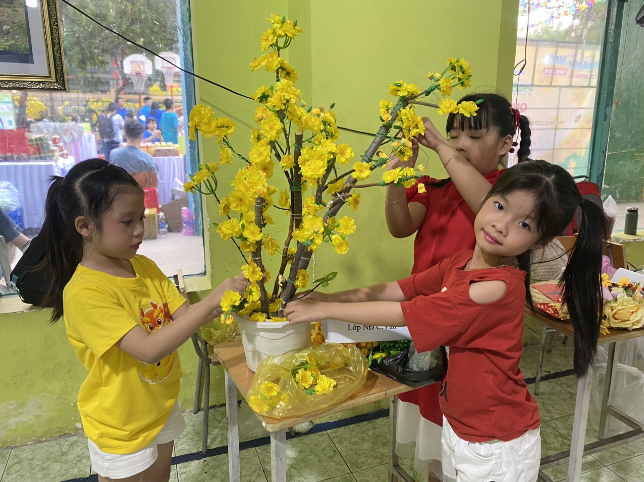 Mở đầu chương trình là hội chợ Xuân với đa dạng các gian hàng ẩm thực, trò chơi dân gian, thực hiện không gian trang trí chụp ảnh Tết, tổ chức hội thi nấu bánh, hội thi trang trí cây mai ngày xuân. Đồng thời, tại sân khấu chính đã diễn ra phần giao lưu văn nghệ, xiếc, ảo thuật, biểu diễn trống kèn… và phối hợp cùng Hội đồng Đội, Phòng Lao động Thương binh và Xã hội quận tổ chức chương trình “Xuân yêu thương” chăm lo cho các em thiếu nhi có hoàn cảnh khó khăn của 14 phường, chăm lo quà tết cho cán bộ, công nhân viên, học viên tại đơn vị cũng như tặng quà tết cho các thành viên câu lạc bộ, đội nhóm tại Nhà Thiếu nhi. Ngoài ra, cũng đã vận động các mạnh thường quân cùng thực hiện công tác chăm lo Tết cho các em thiếu nhi có hoàn cảnh khó khăn tại các đơn vị kết nghĩa, góp phần giúp các em thiếu nhi đón một cái tết thật ý nghĩa, vui tươi và thêm phần ấm áp.
