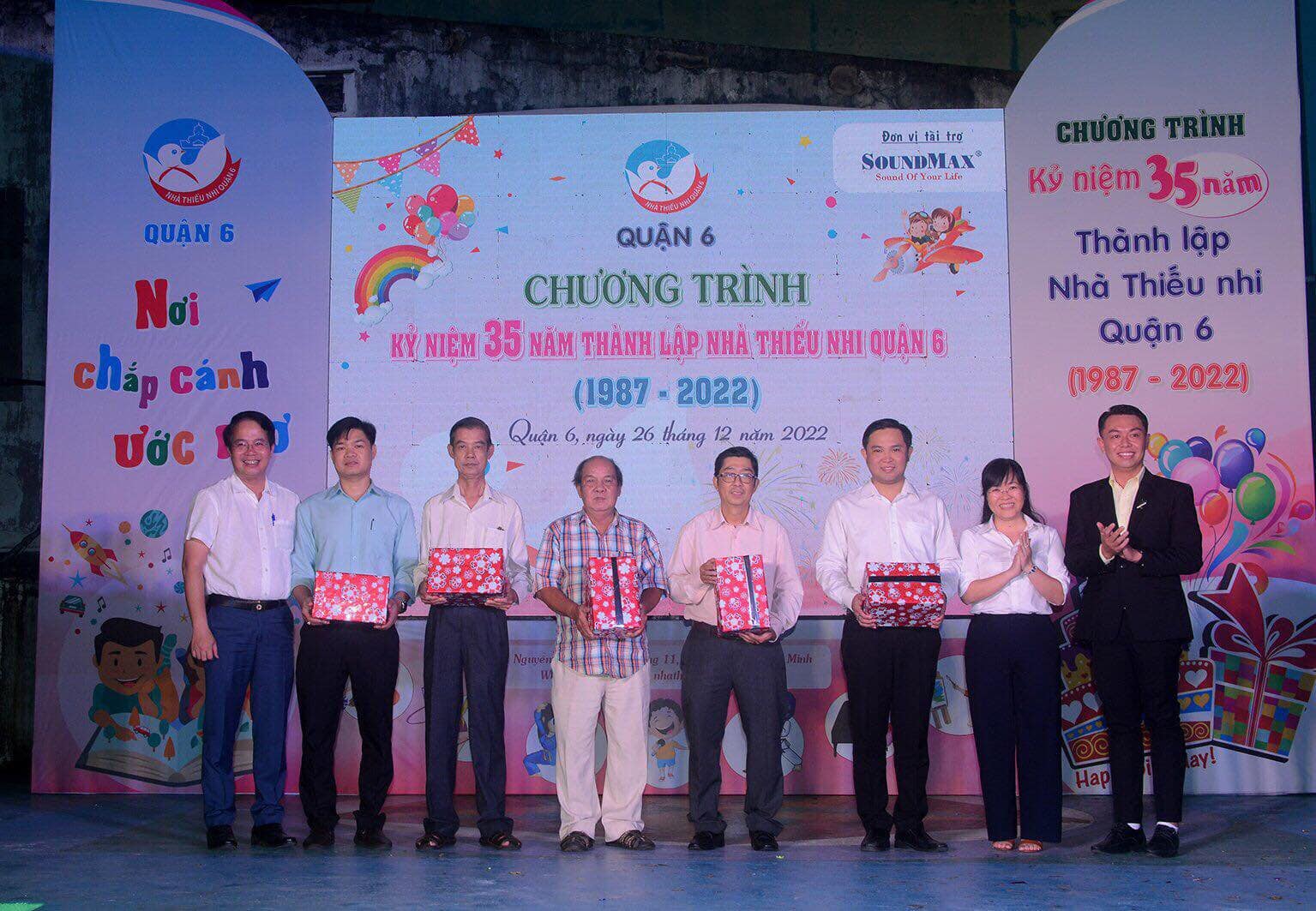 Ngày 26/12/2022, Nhà thiếu nhi Quận 6 đã tổ chức chương trình Kỷ niệm 35 năm Thành lập Nhà thiếu nhi Quận 6 (1987 – 2022) tại số 212 đường Nguyễn Văn Luông, Phường 11, Quận 6, TP.Hồ Chí Minh. Đến tham dự chương trình có các đồng chí: Châu Trương Hoàng Thảo, Ủy viên chuyên trách Ban Pháp chế HĐND TPHCM; Lê Thị Thu, Phó Giám đốc Nhà thiếu nhi TPHCM; Lê Thanh Bình, Ủy viên Ban Thường vụ Quận ủy, Phó Chủ tịch UBND Quận 6; Huỳnh Minh Phúc Hậu, Bí thư Quận Đoàn, Giám đốc Nhà thiếu nhi Quận 6; Đại diện đơn vị tài trợ công ty Soundmax; Cùng nhiều đại biểu, khách mời, phụ trách thiếu nhi, quý phụ huynh và hơn 300 em thiếu nhi đến tham dự chương trình.