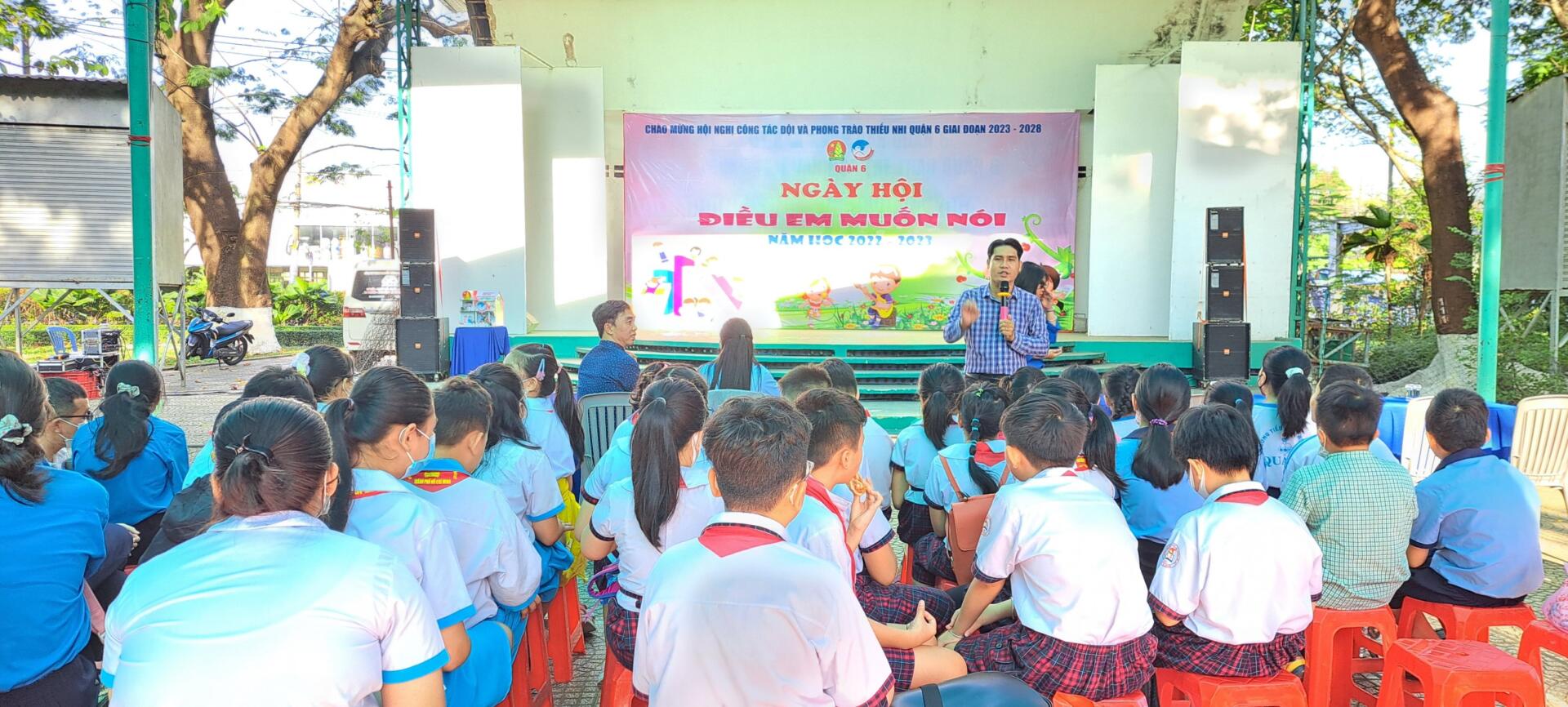Nhằm tạo môi trường giúp lãnh đạo quận lắng nghe ý kiến, tâm tư nguyện vọng và những đề xuất thiết thực của thiếu nhi Quận 6 trong việc học tập, vui chơi. Nhà thiếu nhi Quận 6 đã phối hợp cùng Hội đồng Đội Quận 6 tổ chức Ngày hội “Điều em muốn nói” quận 6 năm học 2022 – 2023 vào sáng Chủ nhật ngày 05/02/2023 tại công viên Phú Lâm.