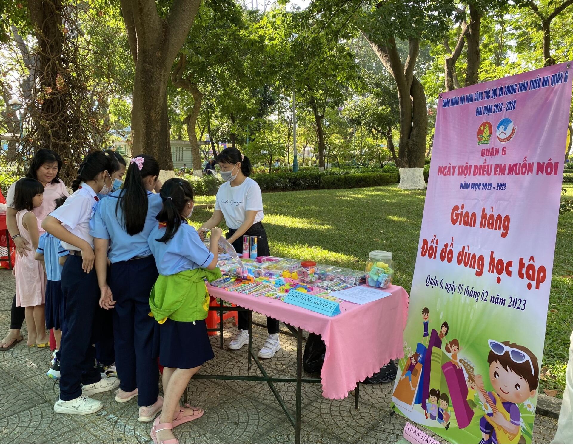 Ngày hội đã diễn ra với “Sân chơi Điều em muốn nói” cùng các gian hàng trò chơi dân gian, gian hàng trò chơi sáng tạo, gian hàng “Đổi đồ dùng học tập” đổi sách, báo cũ, vỏ lon, chai nhựa lấy đồ dùng học tập như bút, thước kẻ, tẩy, gian hàng “Thư pháp đầu Xuân” … được hơn 290 em Đội viên đến từ các trường Tiểu học, THCS trong Quận 6 háo hức tham gia.
