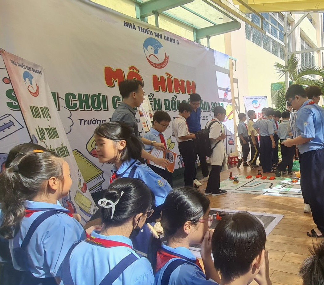 Thực hiện hưởng ứng Ngày Chuyển đổi số quốc gia 10/10 hằng năm, vào sáng ngày 06/10/2023 tại trường Trung học cơ sở Hậu Giang, Nhà Thiếu nhi Quận 6 đã triển khai tổ chức “Mô hình sân chơi chuyển đổi số dành cho thiếu nhi Quận 6” năm 2023, với các sân chơi khoa học công nghệ ứng dụng vào chuyển đổi số phù hợp với thiếu nhi tại địa phương, tạo môi trường thuận lợi để các em được giao lưu, chia sẻ sáng tạo, tăng cường kết nối cộng đồng làm tăng khả năng tương tác, tư duy và giao tiếp, góp phần nâng cao nhận thức cho thiếu nhi về chuyển đổi số và các tiện ích công nghệ để ứng dụng trong học tập, nghiên cứu khoa học.