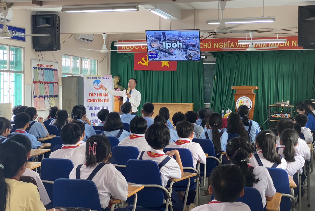 Ngoài ra, các em còn được tập huấn chuyên đề “Ứng dụng Trí tuệ nhân tạo AI và chuyển đổi số trong học tập, nghiên cứu khoa học” do báo cáo viên Thạc sỹ Trần Đức Sự – Phó Giám đốc Trung tâm Phát triển Khoa học và Công nghệ Trẻ, Thành Đoàn Thành phố Hồ Chí Minh thực hiện.