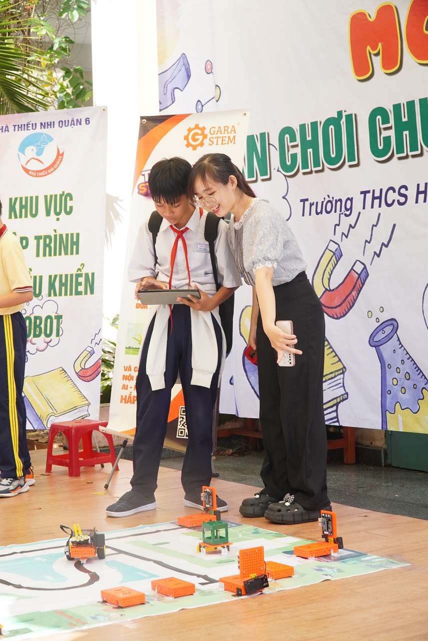 Đến tham dự chương trình có sự góp mặt của: Thạc sỹ Trần Đức Sự – Phó Giám đốc Trung tâm Phát triển Khoa học và Công nghệ Trẻ Thành Đoàn; Anh Nguyễn Đỗ Minh – Trưởng khoa Sáng tạo kỹ thuật Nhà Thiếu nhi Thành Phố; Chị Trần Thị Phương Trang – Ủy viên Thường vụ, Chánh Văn phòng Quận đoàn; Chị Võ Thị Xuân Đào – Phó Chủ tịch Hội đồng Đội, Phó Giám đốc Nhà Thiếu nhi; Cô Nguyễn Thị Hiền – Phó Hiệu trưởng Trường THCS Hậu Giang; Chị Nguyễn Thị Ngân – Trưởng bộ phận Kinh doanh Công ty cổ phần Công nghệ giáo dục GaraStem; Cùng quý thầy cô và đặc biệt là có gần 1000 em thiếu nhi tham gia các sân chơi như: